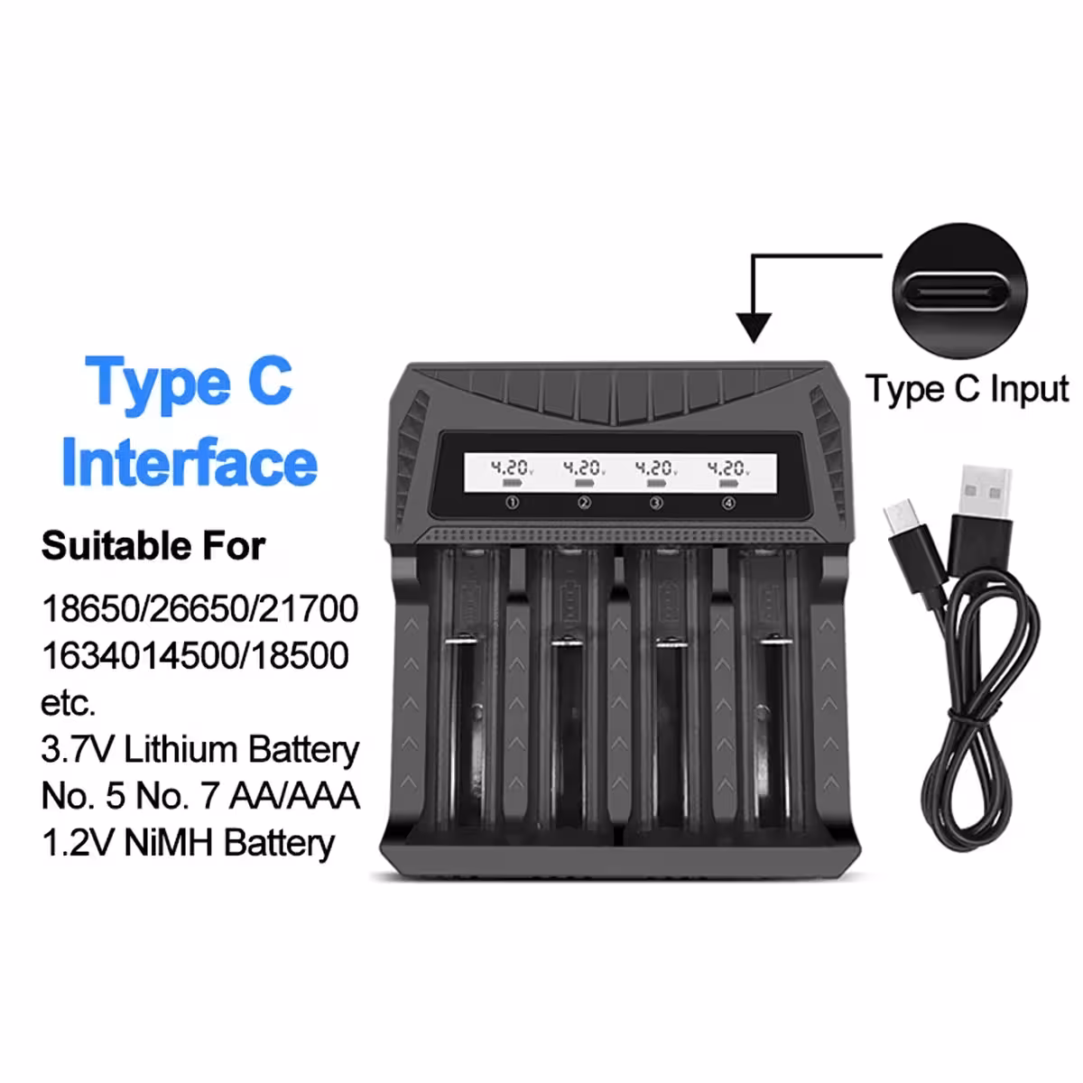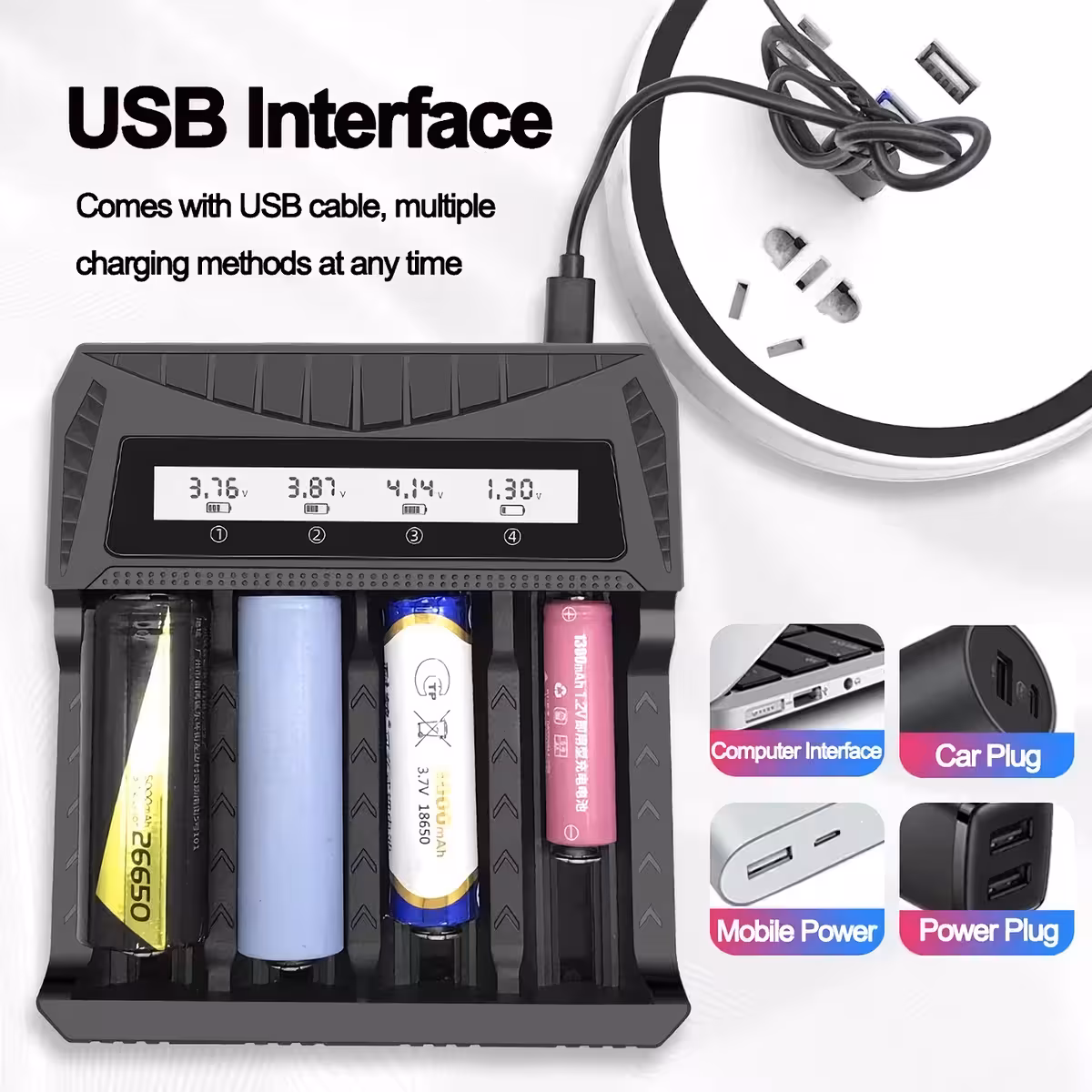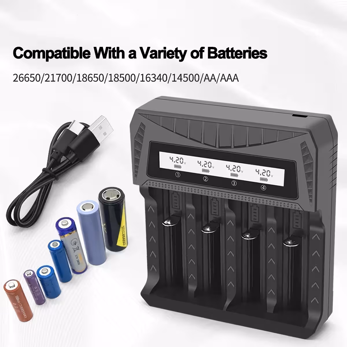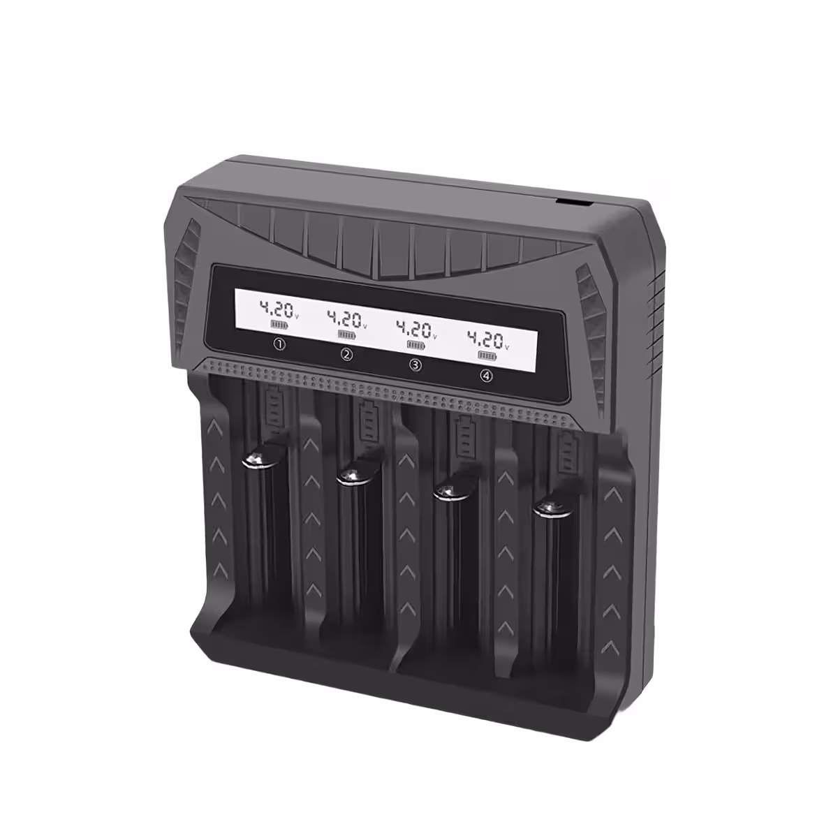 Caricatore universale 18650 con display LCD e 4 slot indipendenti