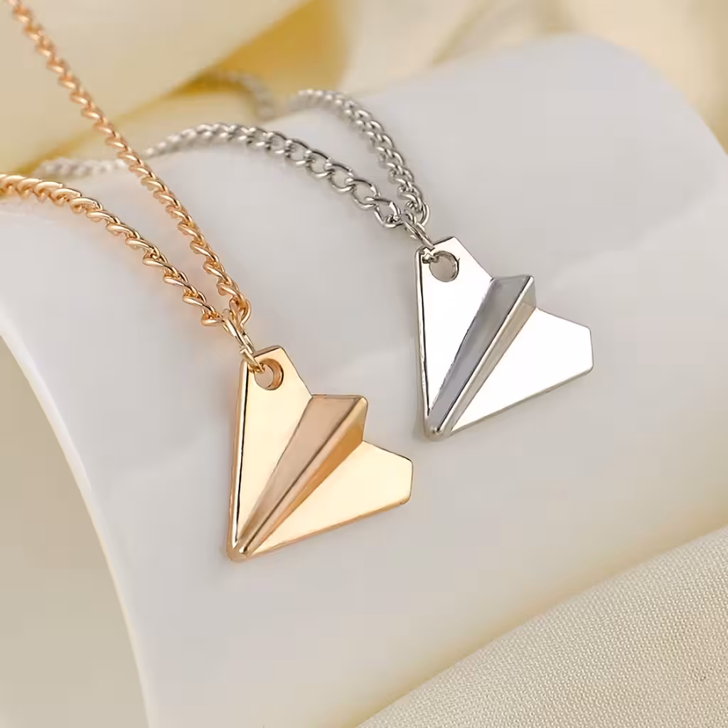 Questo medaglione a forma di aeroplanino di carta è ispirato allo stile di Harry Styles, celebre membro della band One Direction. Identico al pendente indossato dall’artista, è un accessorio ideale per fan e collezionisti.