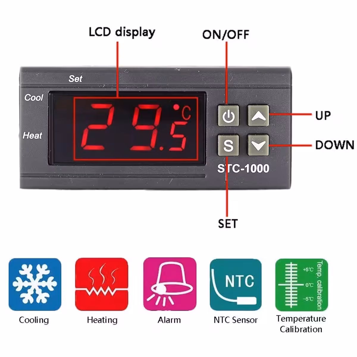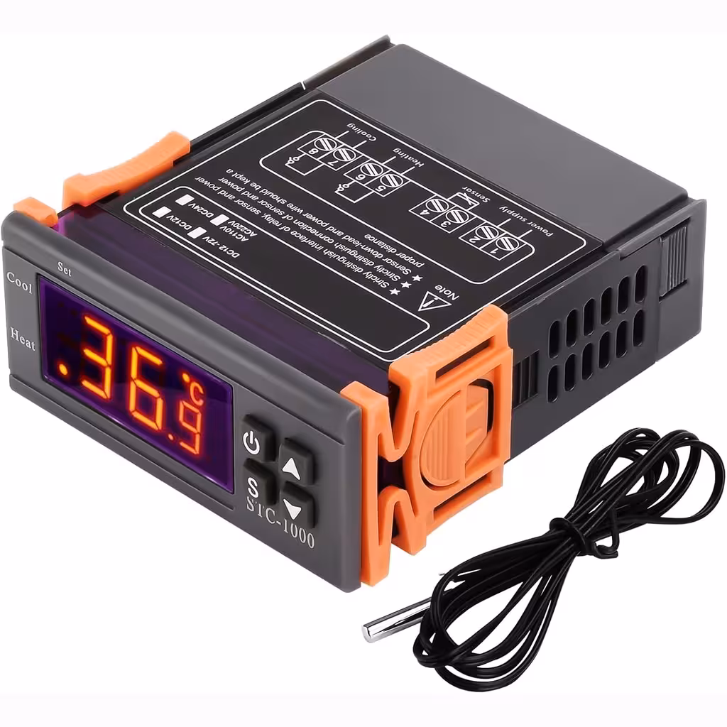 STC-1000 è uno dei controller digitali di temperatura più popolari, ideale per progetti HVAC, frigoriferi, camere frigorifere, fermentazione, controllo dei radiatori e applicazioni industriali. Funziona con alimentazione AC 110–220V e offre un controllo preciso tra -50 e 99°C, utilizzando un sensore NTC 10K impermeabile.