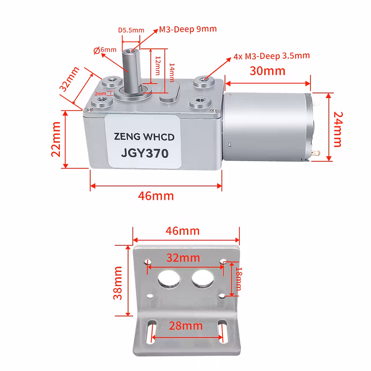 Motore a vite senza fine 12V GY-370 – bassa velocità, alta coppia e funzionamento silenzioso