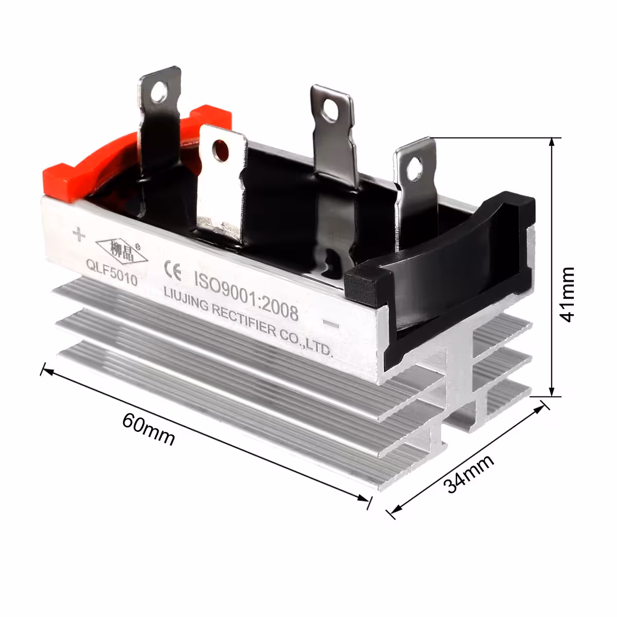 Ponte Raddrizzatore Monofase 50A 1200V con Dissipatore – Ponte diodi con 4 Diodi per Raddrizzamento AC-DC