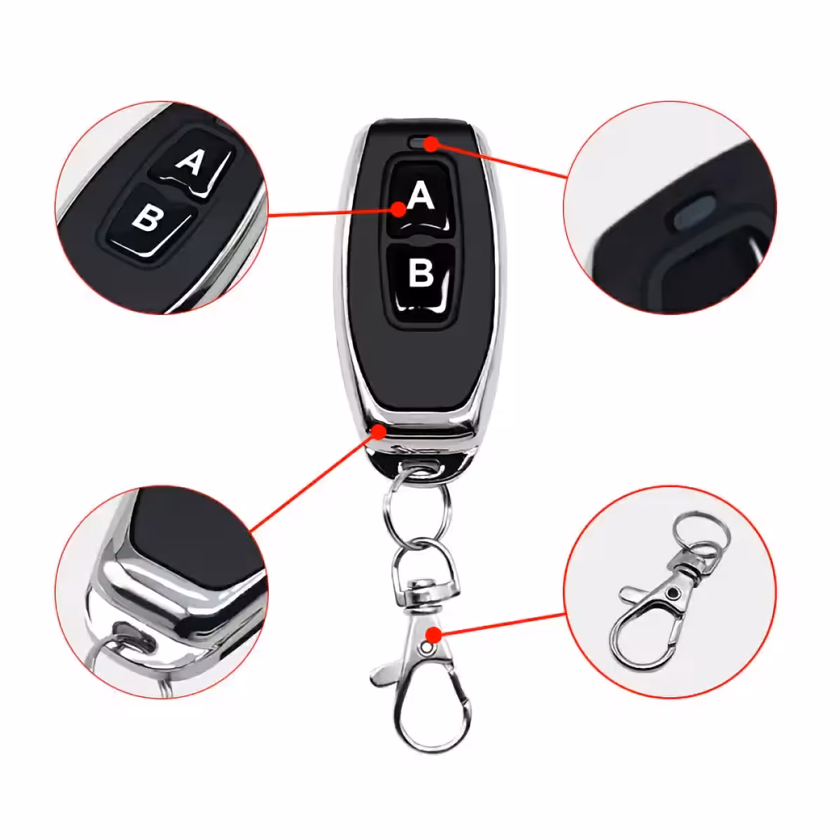 Questo telecomando aggiuntivo non può clonare altri telecomandi e deve essere associato tramite programmazione diretta con un ricevitore compatibile. È ideale per l’uso con sistemi di automazione come cancelli, luci o altre applicazioni con relè RF 433MHz a 2 canali.
