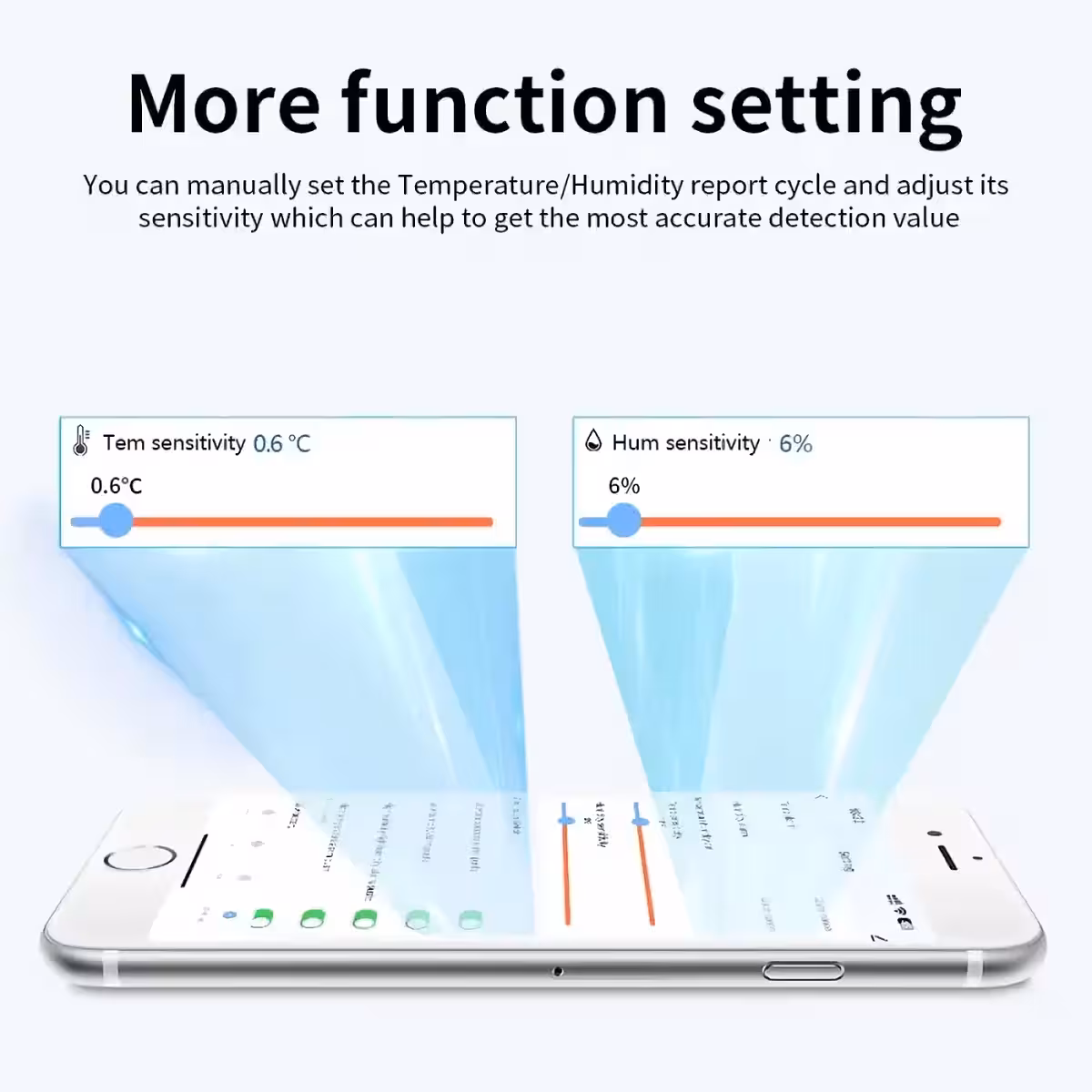 Funzionando con due batterie AAA, il sensore è facile da installare, senza cavi o interventi elettrici. Misura con precisione i livelli di temperatura e umidità, garantendo un ambiente confortevole in ogni momento.