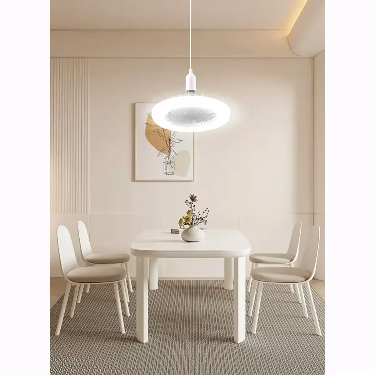 Con un design moderno e compatto, questo ventilatore a soffitto bianco porta freschezza e stile in terrazza, cucina o nella tua stanza. Dotato di telecomando, puoi regolare facilmente la velocità del ventilatore – vento leggero, medio o forte – così come il tipo e l’intensità della luce, scegliendo tra luce bianca, calda o naturale, grazie alla lampadina LED dimmerabile integrata.