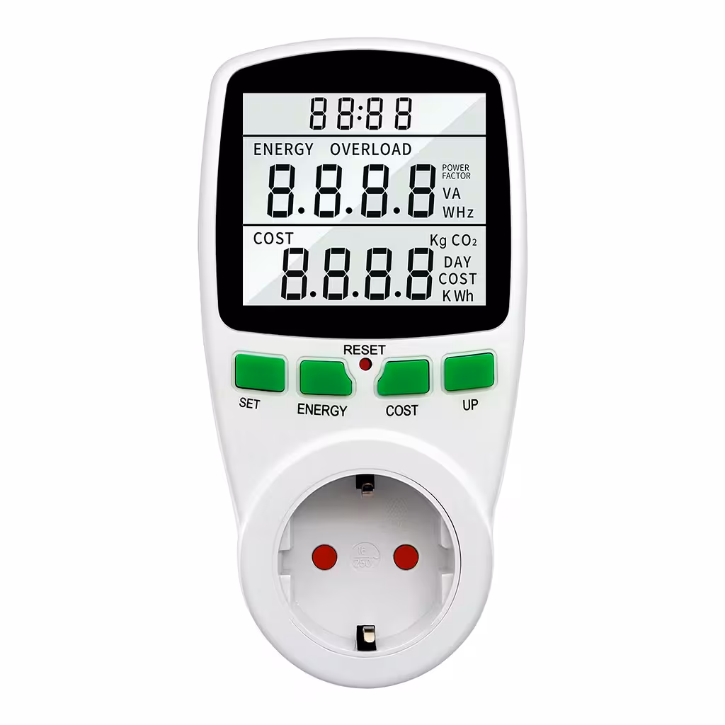 Questo wattmetro consente di misurare con precisione i parametri elettrici di qualsiasi dispositivo collegato alla presa. Monitora il consumo reale di energia elettrica degli apparecchi nella tua abitazione o ufficio per ottimizzare i costi.